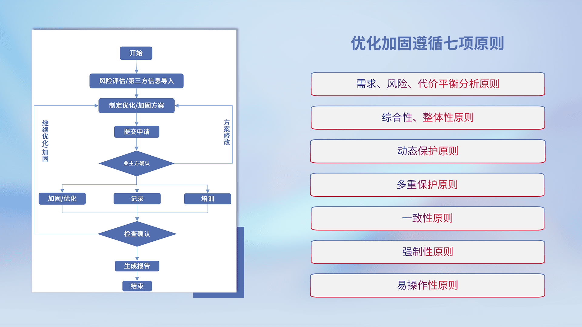 最大程度利用现有资产,,对评估发现的问题进行封堵与整改,,,,防止漏洞被利用,,,提升整体网络安全性,,为客户带来高标准的优化加固服务。。